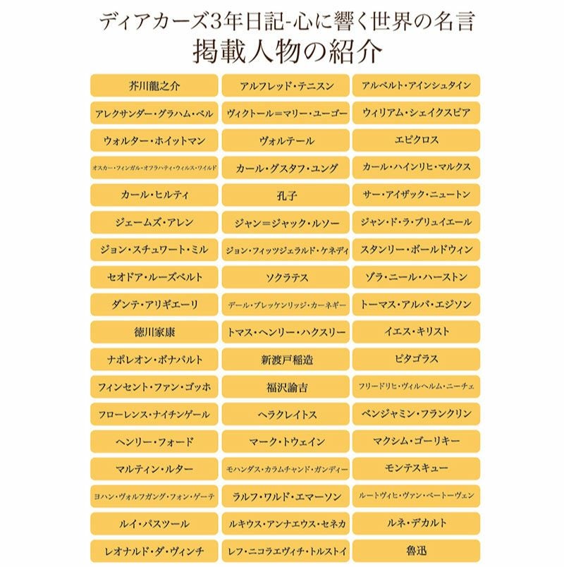 他の画像を見る 一冊で複数年にわたって書ける「連用日記」 ディアカーズ DEAR CARDS 3年日記 心に響く世界の名言 送料無料 特別価格 ¥ 4,180 税込 一冊で複数年にわたって書ける「連用日記」 詳細を見る お気に入りに登録する