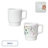 フルカラー印刷が小ロットからできる陶器マグに、重ねて置けるスタッキングタイプが登場!アメリカンレトロを思わせるフォルムがプリントデザインにトレンド感をプラスします。昇華転写でのフルカラープリントに30個から対応しているので、少量からオリジナルグッズを作ることができます。入学入園、卒業などの学校記念品や企業の周年記念品はもちろん、プランドロゴをプリントしてアパレルノベルティやバンドなどのアーティストグッズにもぜひおすすめしたいアイテムです。