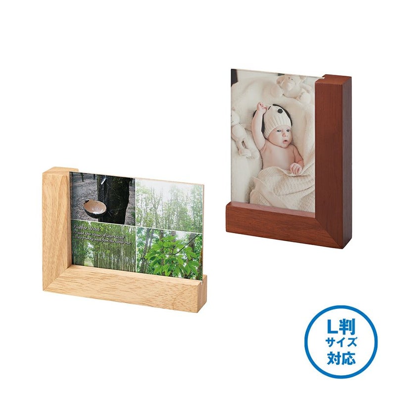 ギフトアイテムとして根強い人気のあるフォトフレームにラバーウッド素材の商品が登場しました。おしゃれなデザインのL字の淵で、幅広くご提案できる商品です。素材のゴムの木は家具やインテリア雑貨にも使われる木材で、天然ゴム採取後の廃材を再利用しているエコアイテムです。また、ゴムの木の花言葉は永久の幸せなので、卒業記念品などの贈り物としても重宝されています。※天然素材の為、印刷の際、多少木目の影響を受ける場合がございます。