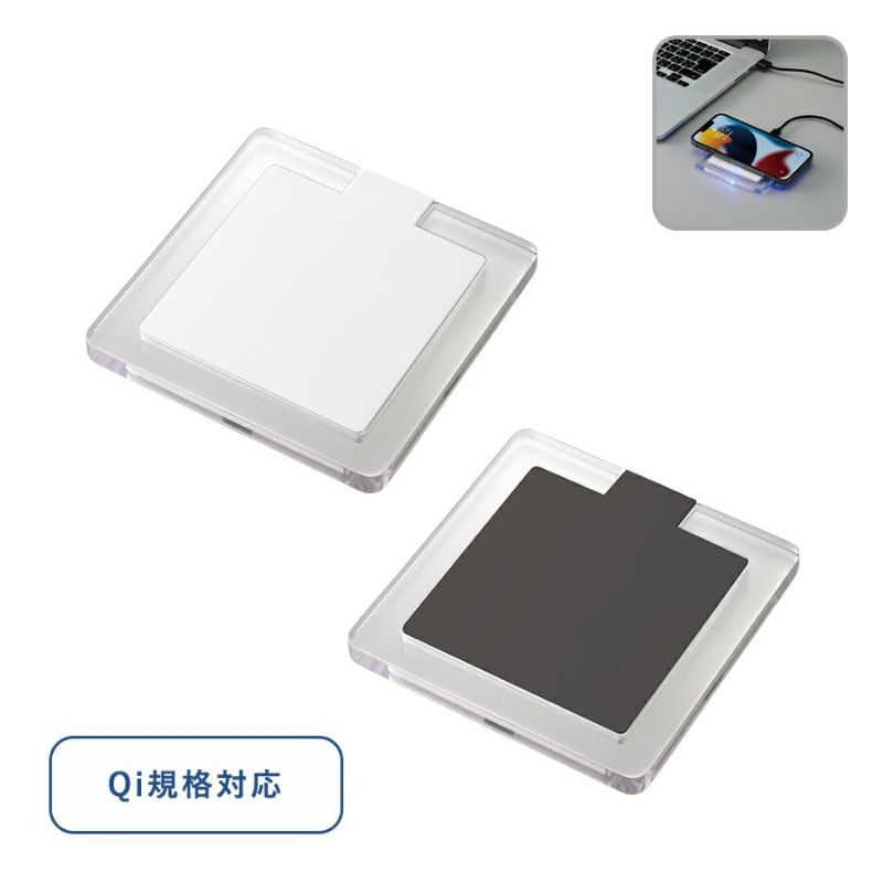 【10個入り】クリアワイヤレス充電器 スクエア 5W 【名入れロゴ入れ彫刻無料】