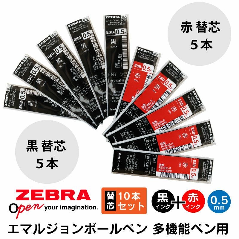 ゼブラ エマルジョンボールペン 替芯 黒5本赤5本 10本セット ESB-0.5芯