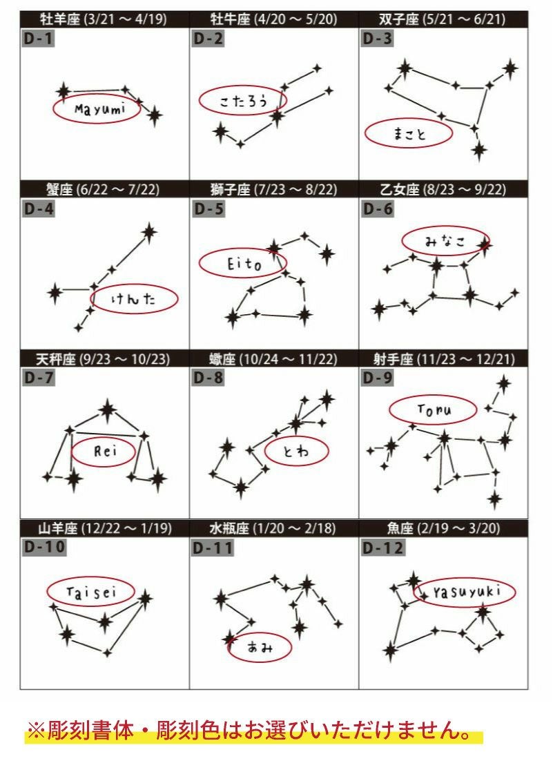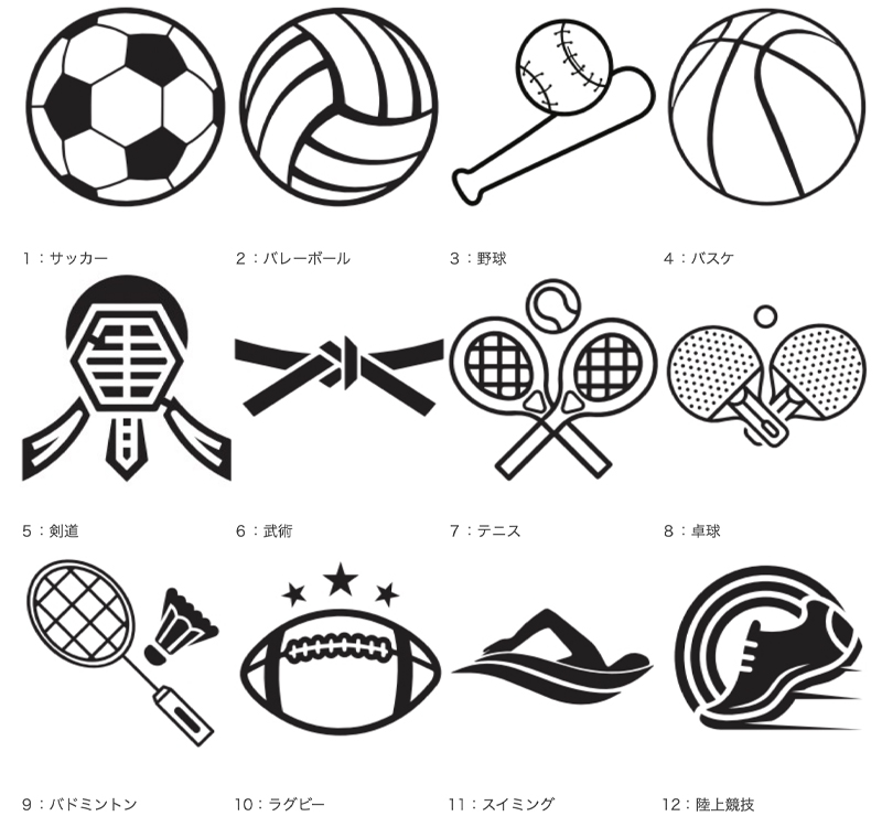 競技ごとのマークを名入れ彫刻の前や後ろに追加することができます。ご希望の場合は、通信欄に番号と競技名、ご希望の配置をお書き添え下さいませ。