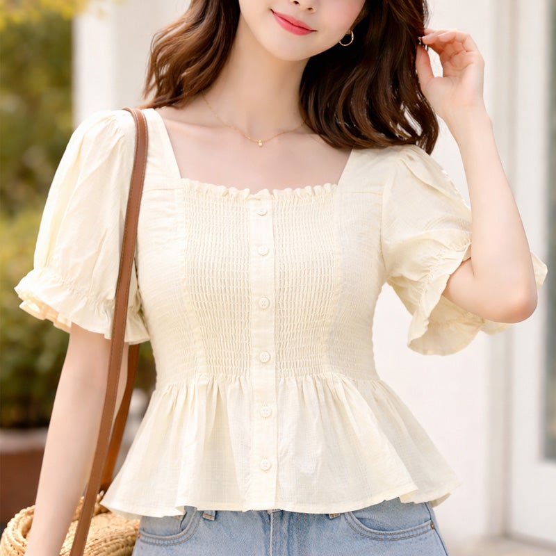 レディース アパレル トップス カットソー 半袖 薄黄 M 綿100%