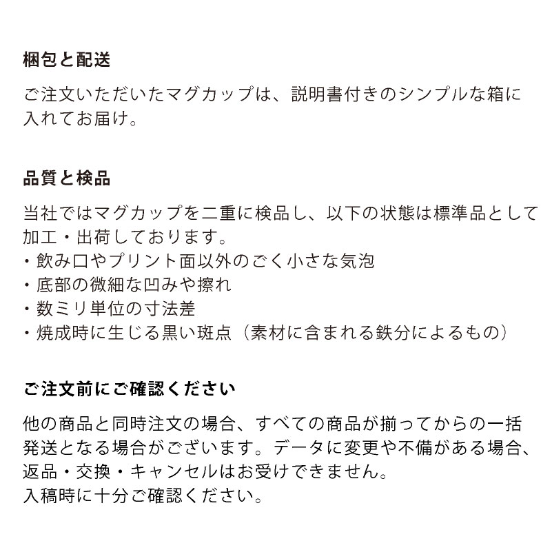 当社ではマグカップを二重に検品し、以下の状態は標準品として
