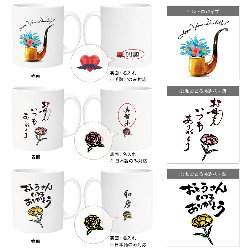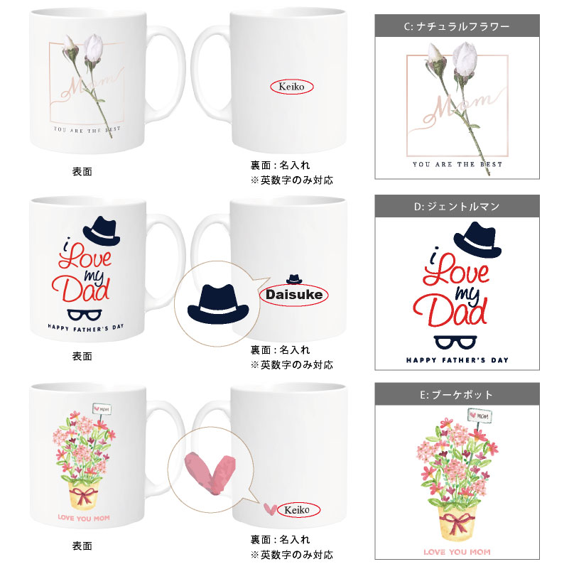 母の日、父の日のためにご用意した限定デザインマグカップ。