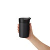 マニッシュなふた付きタンブラー。真空2重構造なので、温度をしっかりキープします。