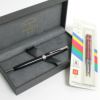 ラッカー仕上げの艶感とさわやかなクロームトリム。パーカーソネットボールペンラックブラックCTと、パーカー純正赤中字替え芯2本のセットです。