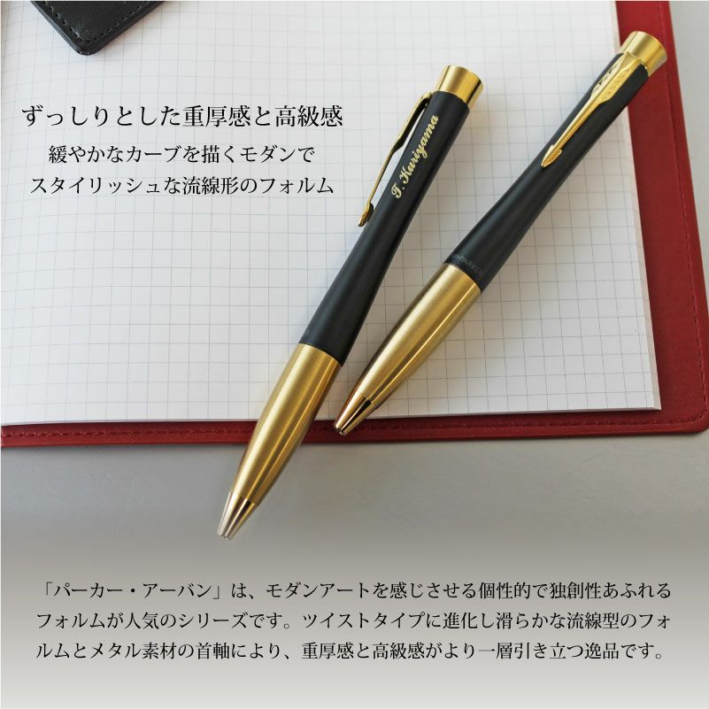他の画像を見る モダンアートを感じさせるフォルムと高級感あふれるボールペン PARKER URBAN パーカー アーバン マットブラックGT 名入れボールペン 名入れ彫刻 ロゴ彫刻可能 特別価格 ¥ 6,600 税込 詳細を見る お気に入りに登録する