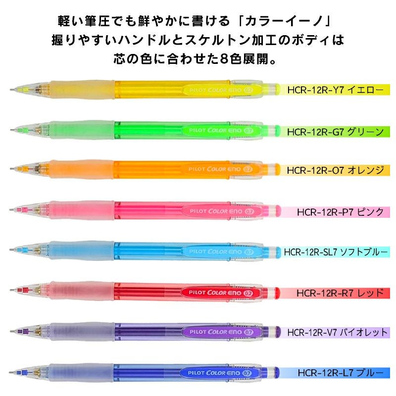他の画像を見る カラー芯搭載!くっきり書けてきれいに消せる! パイロット カラーイーノシャープペンシル 0.7mm 8色セット カラー芯 メール便 特別価格 ¥ 960 税込 在庫切れ ノートや手帳に色分けして書き込みやすい!黒い紙にもOK♪ 詳細を見る お気に入りに登録する