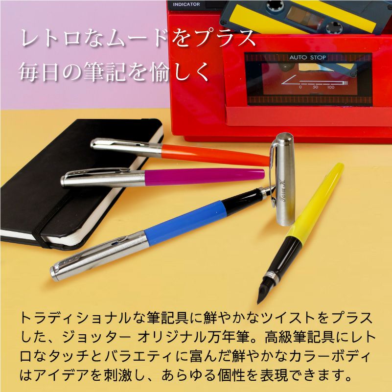 他の画像を見る 90年代カルチャー、アートの魅力 ポップでカラフルな軽量万年筆 Parker Jotter パーカー ジョッター オリジナル 万年筆 F 細字 名入れ彫刻 特別価格 ¥ 2,420 税込 詳細を見る お気に入りに登録する